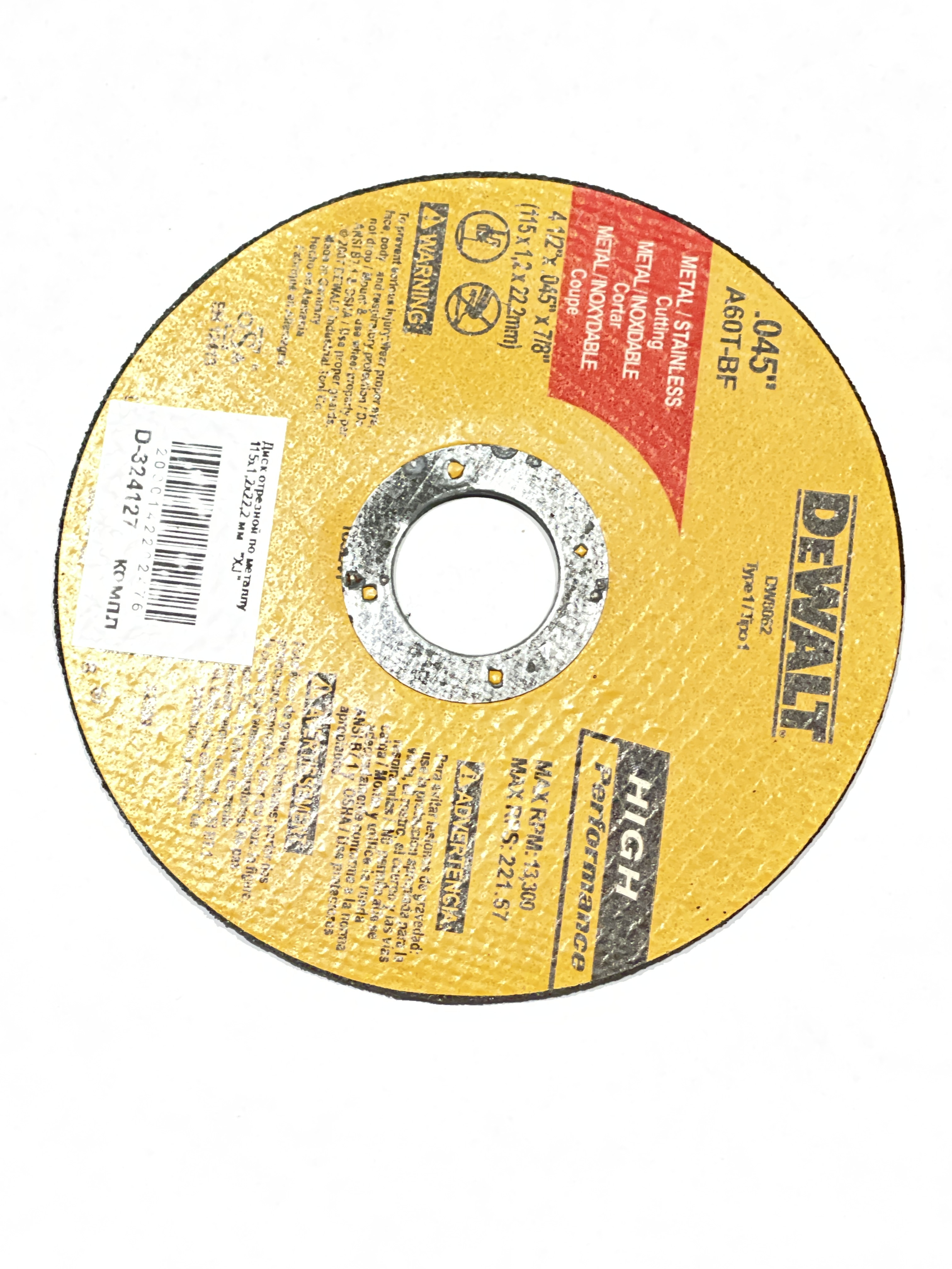 Диск отрезной по металлу 115x1,2x22,2 мм XJ D-324127