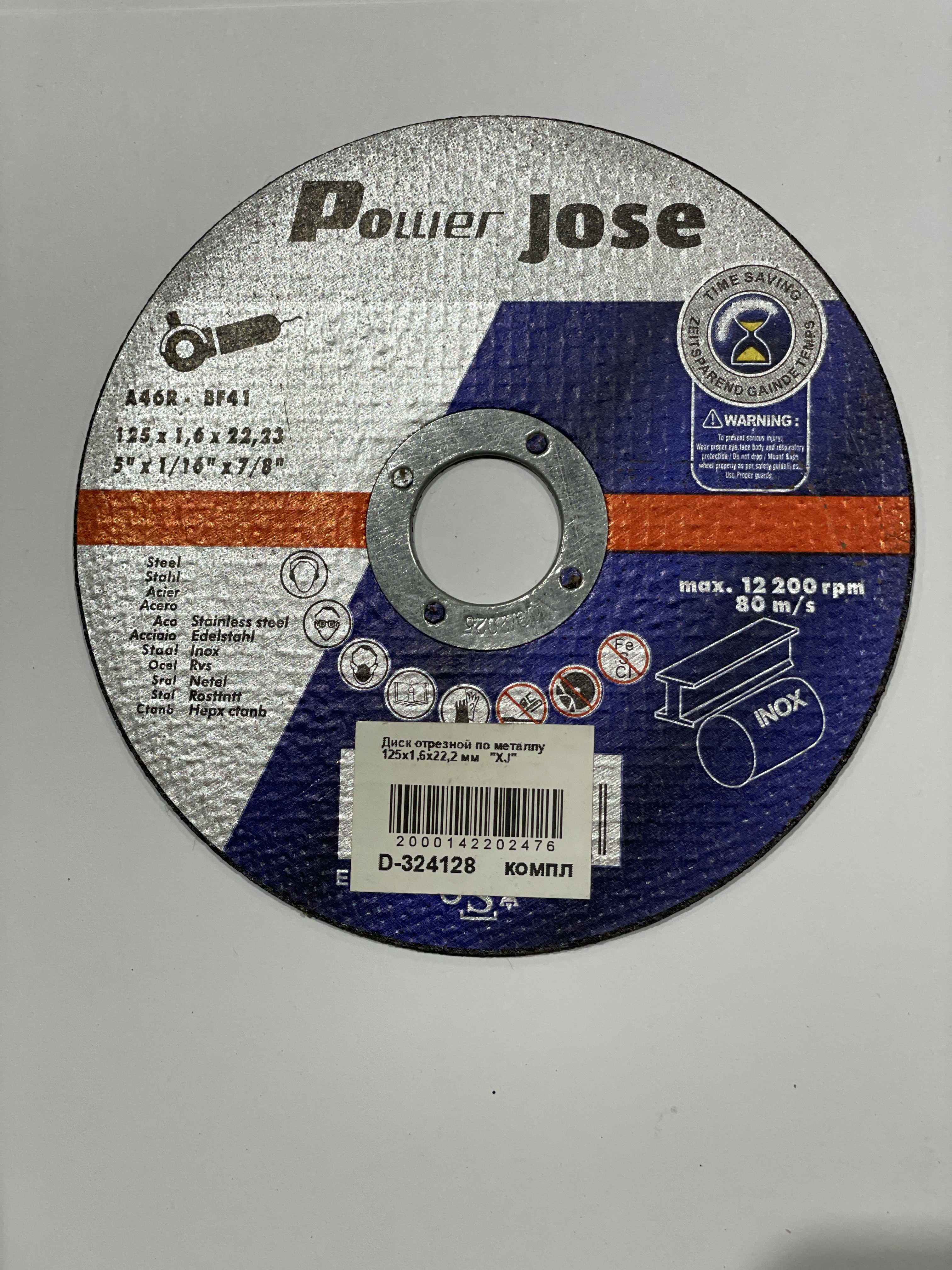 Диск отрезной по металлу 125x1,6x22,2 мм XJ D-324128