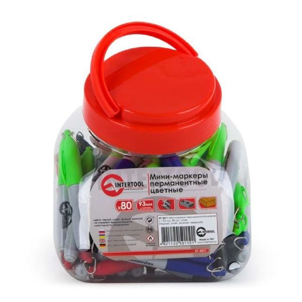 Мини-маркеры перманентные цветные L=93 мм, 80 шт/упак. (Черный, синий, зеленый, красный) KT-5011
