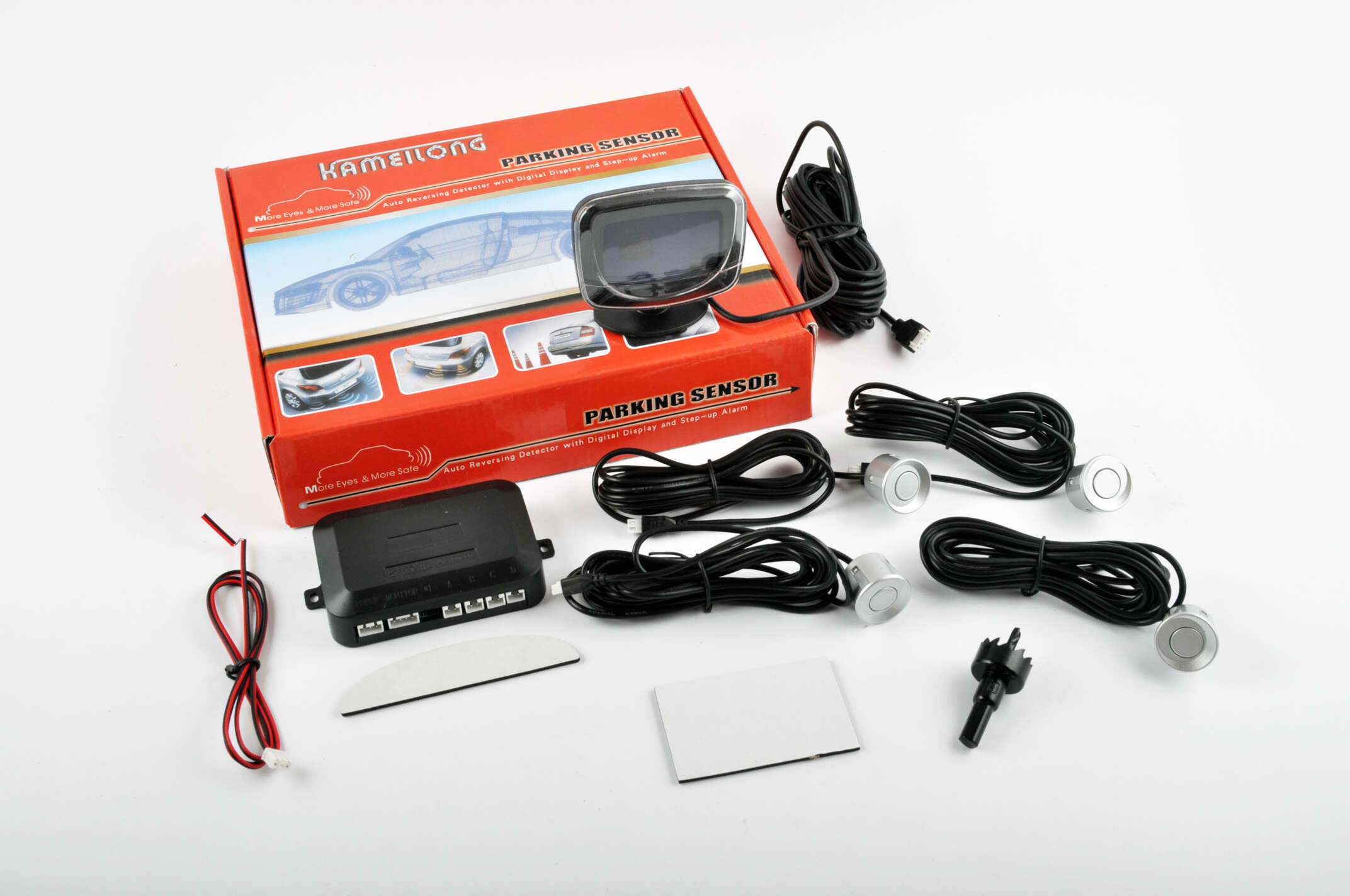 Парктроник mod:LH-813B (датчики серебристые 4шт, LCD, штурман, монтажный комплект) KAMEILONG P-1688