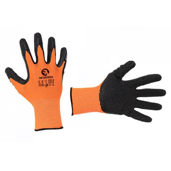 Перчатка белая вязаная синтетическая, покрытая серым рифленым латексом на ладонях 10.