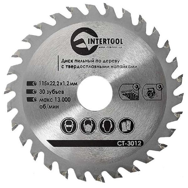 Диск пильный по древесине с твердосплавными напайками 115*22*1.4 мм, 30 зубов. CT-3012