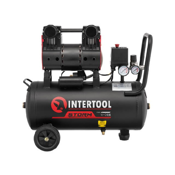Компрессор 24 л, 1.1 кВт, 220 В, 8aтм, 160 л/мин, 1400 об/мин, малошумный, безмасляный, 2 цилиндра.