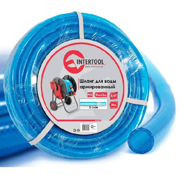 Шланг для воды трехслойный, синий, 3/4, 10 м, армированный, PVC GE-4071