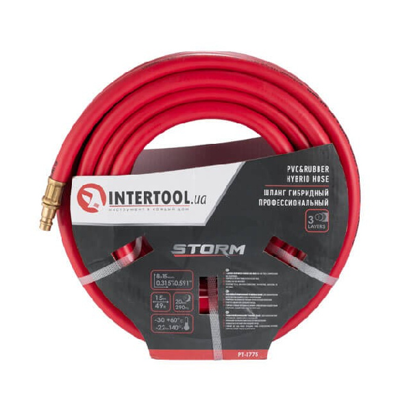 Шланг гибридный профессиональный, 20 атм, 8*15 мм, 15 м, с латунными быстроразъемными соединениями, STORM PT-1775